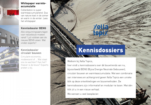 hier vindt u kennisdossiers over dé bouwtrends van nu, bijvoorbeeld BENG (Bijna Energie Neutrale Gebouwen), circulair bouwen en warmteaccumulatie. Met een combinatie van interviews en achtergrond geven Xella Topics een unieke blik op deze ontwikkelingen en bouwmethoden. De kennisdossiers zijn informatief en modulair te lezen. Met één klik zit u in een nieuw verhaal.